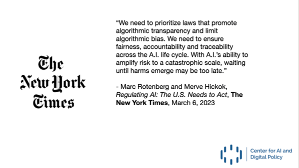 Marc Rotenberg and Merve Hickok, Regulating A.I.: The U.S. Needs to Act