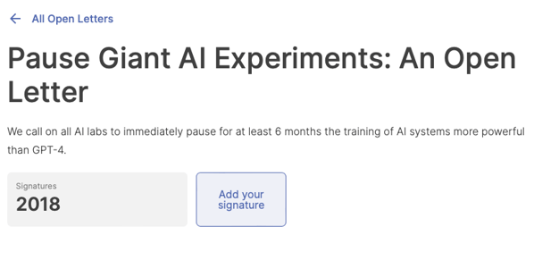 We favor growth and innovation. We recognize a wide range of opportunities and benefits that AI may provide. But unless we are able to maintain control of these systems, we will be unable to manage the risk that will result or the catastrophic outcomes that may emerge. We are asking the FTC to “hit the pause button” so that there is an opportunity for our institutions, our laws, and our society to catch up. We need to assert agency over the technologies we create before we lose control.