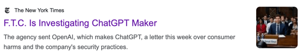 In March, CAIDP filed the initial Complaint against OpenAI. In July, CAIDP filed a Supplement, providing new evidence for the FTC to act. Shortly afterward, The New York Times and The Wall Street Journal reported that the FTC had opened the investigation CAIDP requested.