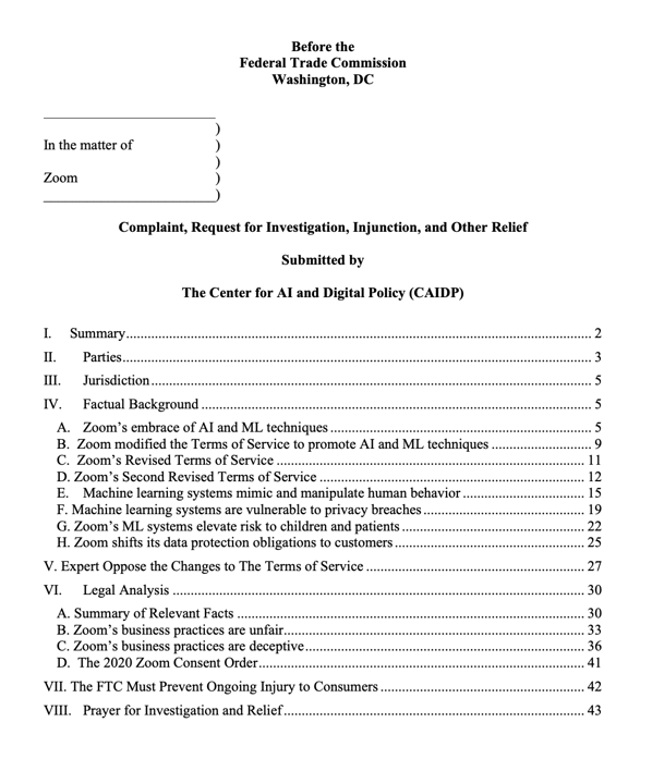 misleading, deceptive, and unfair. The Federal Trade Commission should open an investigation to determine whether Zoom has violated the Federal Trade Commission Act, the 2020 Zoom Consent Order, or the guidance the FTC has set out regarding AI products and services.