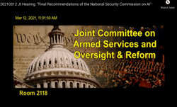 US Congress - Joint Hearing -House Armed Services Committee and House Oversight Committee, “Final Recommendations of the National Security Commission on Artificial Intelligence," March 12, 2021