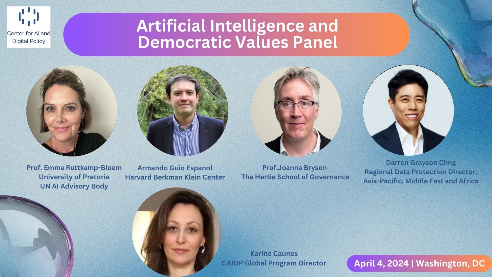 09:30 Panel – The 2023 AI and Democratic Values Index, moderator: Dr. Karine Caunes, AIDV Editor-in-chief. 4th edition of CAIDP flagship report AI & Democratic Values Index, followed by panel discussion
