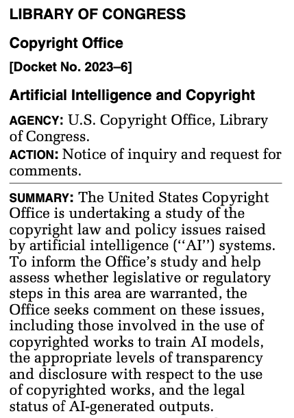 Here are few key points about the Copyright Office Notice of Inquiry concerning Artificial Intelligence: