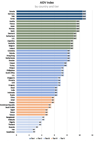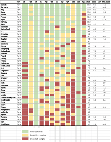 CAIDP AI Index - Country Ratings 2021 v. 2020